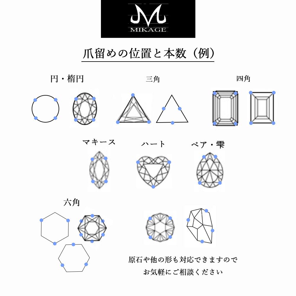 ※ 爪の位置や本数の変更(イメージ図をご参考ください):追加料金¥1,000~